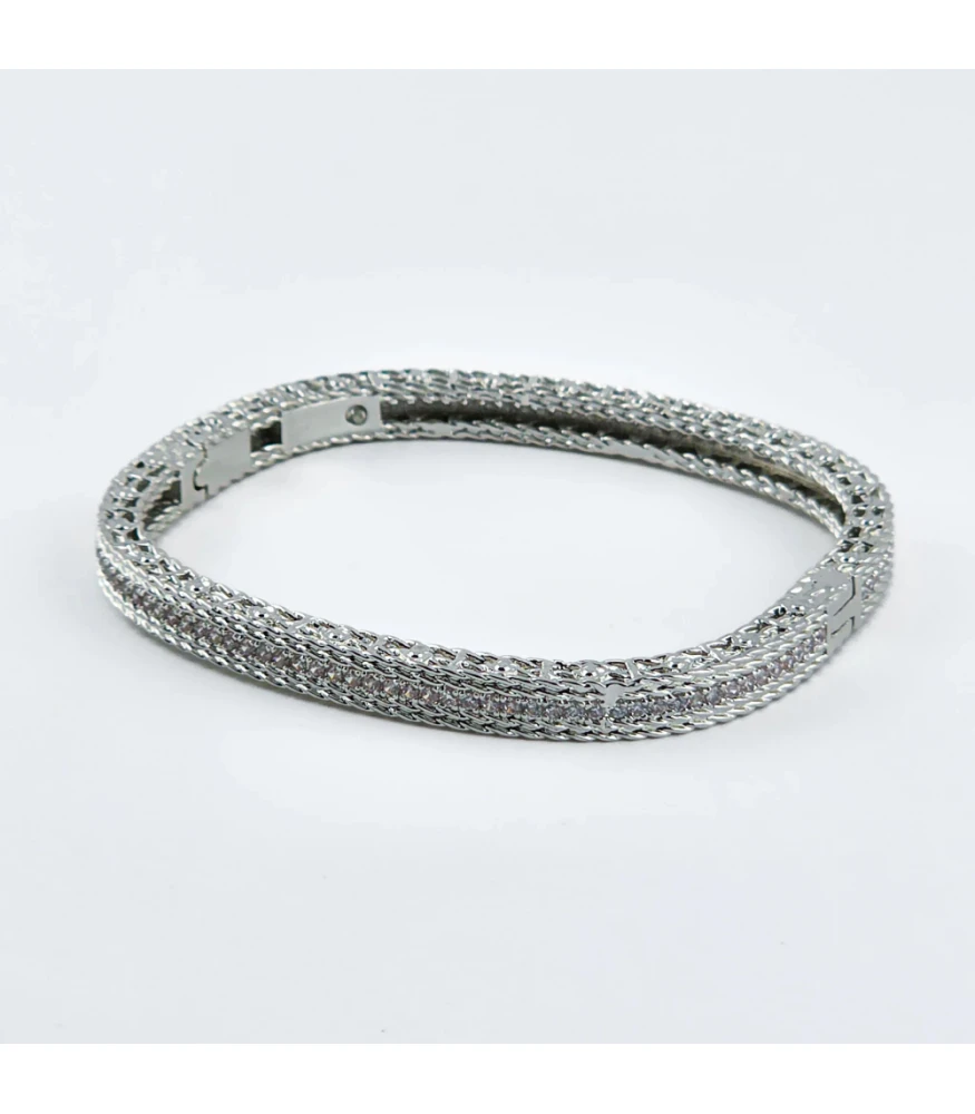 โดดเด่นด้วยลวดลายถักทอแบบคล้ายโซ่หรือตาข่าย กำไลถูกประดับด้วยเพชรเม็ดเล็กๆ ที่เรียงรายกันอย่างเป็นระเบียบ ทำให้เกิดประกายระยิบระยับ ให้ความรู้สึกเรียบหรูและสง่างามเหนือกาลเวลา
