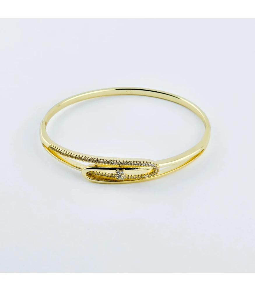 กำไลข้อมือชิ้นนี้เป็นตัวอย่างของความงามที่เรียบง่ายแต่แฝงไปด้วยความหรูหราอย่างมีสไตล์ ตัวเรือนสีทองอร่ามเงางาม ให้ความรู้สึกอบอุ่นและคลาสสิกเหนือกาลเวลา