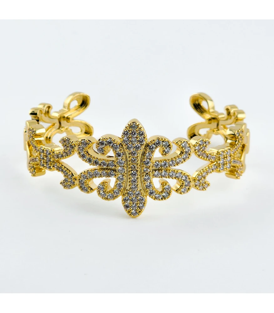 กำไลข้อมือแบบเปิดที่ประดับด้วยเพชร ออกแบบโดยได้รับแรงบันดาลใจจากลวดลายดอกลิลลี่ และมีองค์ประกอบของเครื่องประดับตะวันตกในยุคกลาง มีดีไซน์ที่หรูหรา วิจิตร และมีกลิ่นอายของความเป็นตะวันตกในยุคกลาง เหมาะสำหรับผู้ที่ชื่นชอบเครื่องประดับที่มีดีไซน์คลาสสิกและสง่างามรายละเอียดสินค้า