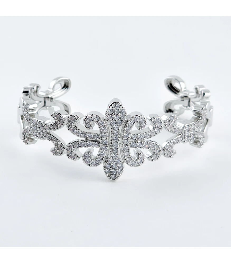 กำไลข้อมือแบบเปิดที่ประดับด้วยเพชร ออกแบบโดยได้รับแรงบันดาลใจจากลวดลายดอกลิลลี่ และมีองค์ประกอบของเครื่องประดับตะวันตกในยุคกลาง มีดีไซน์ที่หรูหรา วิจิตร และมีกลิ่นอายของความเป็นตะวันตกในยุคกลาง เหมาะสำหรับผู้ที่ชื่นชอบเครื่องประดับที่มีดีไซน์คลาสสิกและสง่างามรายละเอียดสินค้า