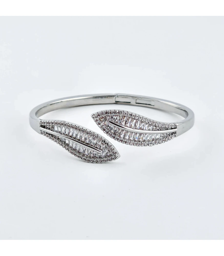 กำไลข้อมือชิ้นนี้สะท้อนความงดงามของธรรมชาติได้อย่างอ่อนช้อยและหรูหรา ด้วยดีไซน์ที่ได้รับแรงบันดาลใจจากรูปทรงของใบไม้ จุดเด่นของกำไลอยู่ที่ปลายทั้งสองด้าน ซึ่งถูกออกแบบให้เป็นรูปทรงคล้ายใบไม้ที่โค้งมนอย่างเป็นธรรมชาติ ให้ความรู้สึกเรียบหรูและทันสมัย