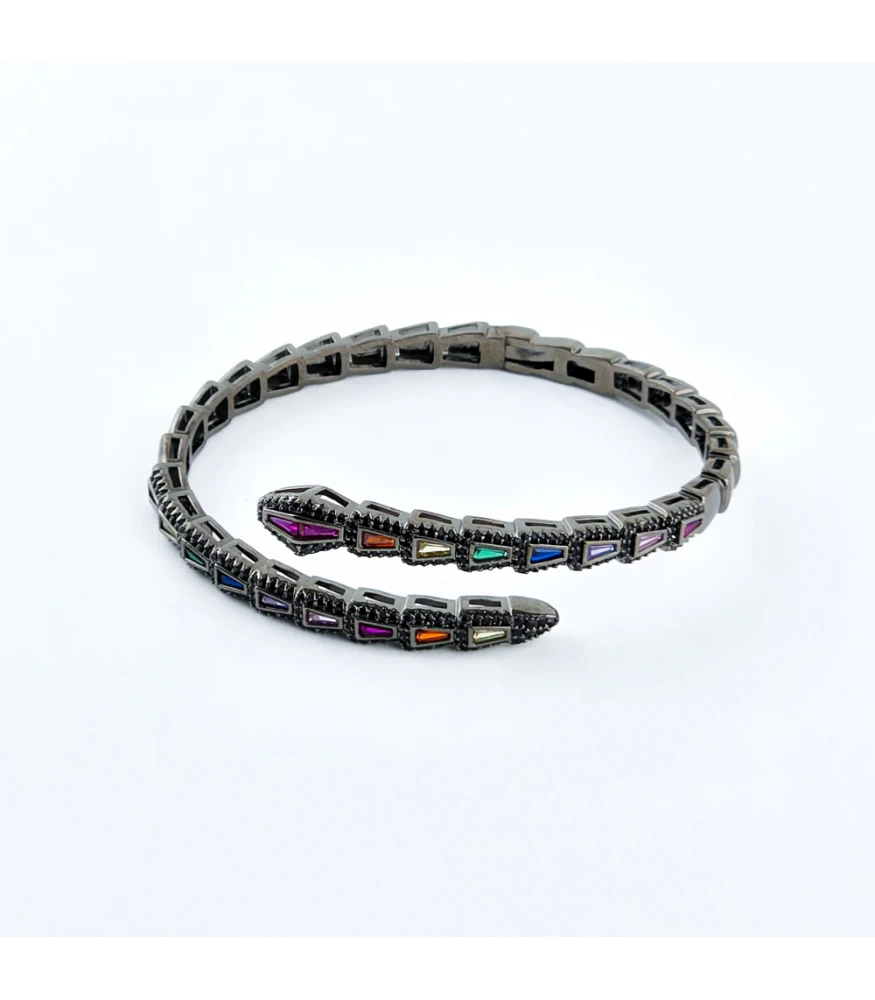 โดดเด่นด้วยดีไซน์รูปงูที่ผสมผสานความลึกลับและความสนุกสนานของสีสันเข้าไว้ด้วยกันอย่างลงตัว ตัวเรือนสีดำรมควันหรือเมทัลลิกเข้ม ทำให้สร้อยข้อมือมีเอกลักษณ์และดูน่าค้นหา แสดงออกถึงบุคลิกที่โดดเด่น มีสไตล์ และไม่เหมือนใคร ความลึกลับของสีเข้มที่ตัดกับความสดใสของอัญมณีหลากสีจะทำให้ผู้สวมใส่ดูมีเสน่ห์และน่าจดจำ