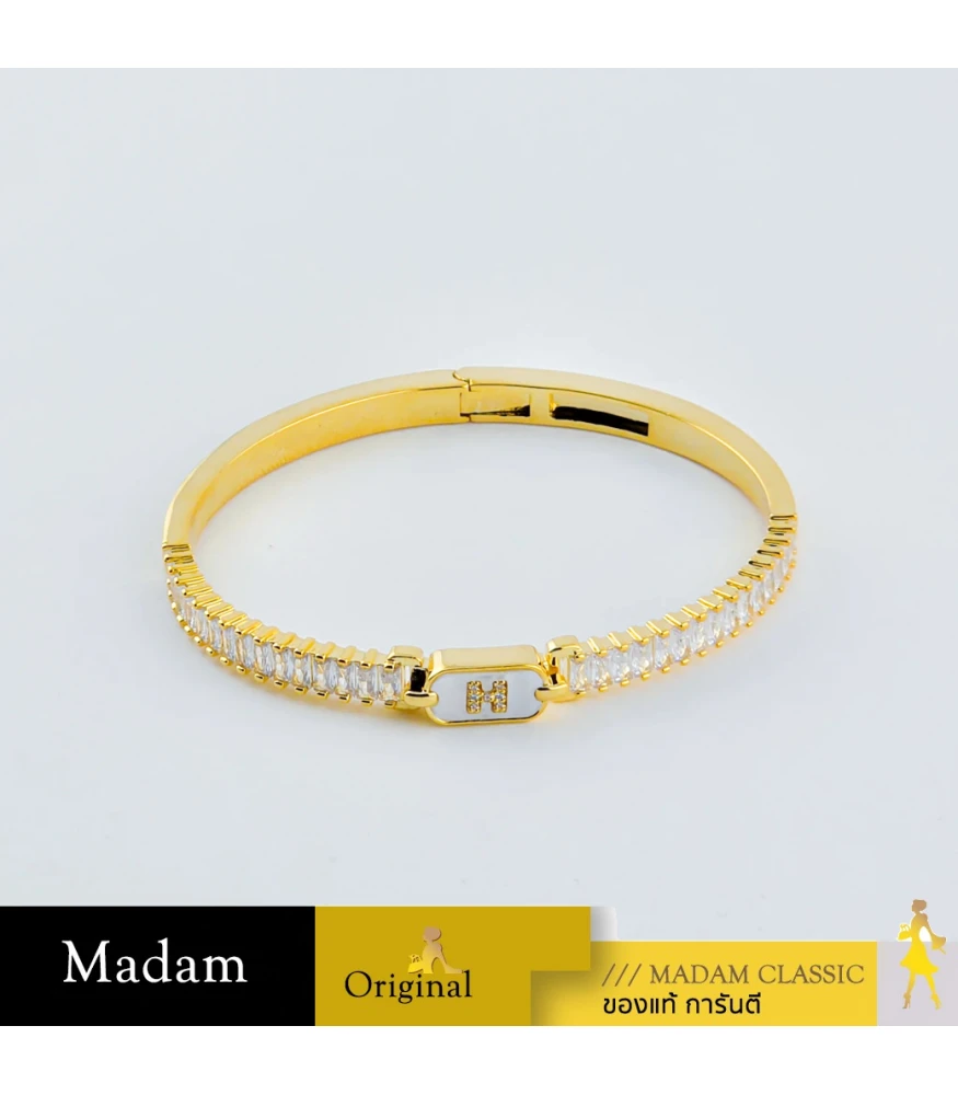 โดดเด่นด้วยเพชรทรงบาแกตต์ (Baguette Cut) เเละตัวอักษร ""H"" ที่ถูกประดับด้วยเพชรเม็ดเล็กๆ ซึ่งเพิ่มความพิเศษและความเป็นเอกลักษณ์ให้กับกำไล