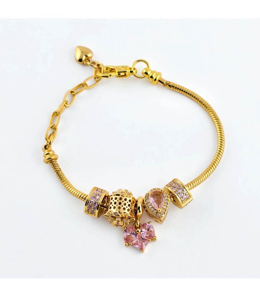 สร้อยข้อมือลูกปัด Charm : ความเปล่งประกายสีทองและชมพู