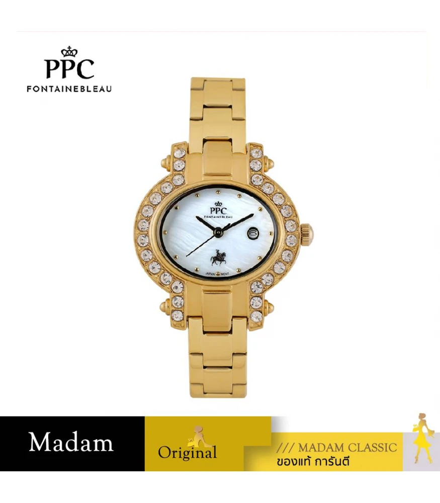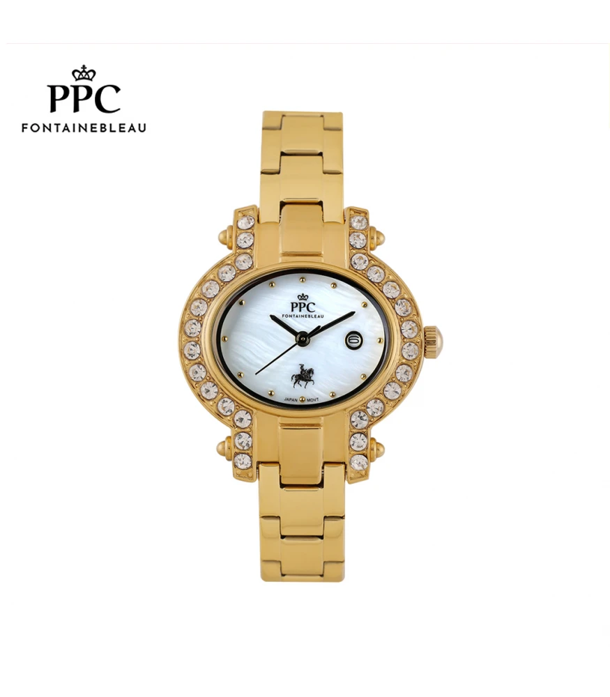 นาฬิกาข้อมือ PPC FONTAINEBLEAU PPC-EC09-GD-WE OVALE HORIZONTAL COURT DATE 34 MM,GOLD / WHITE