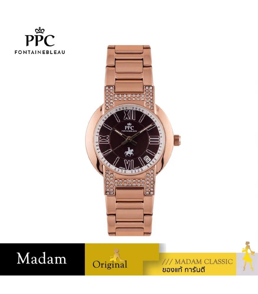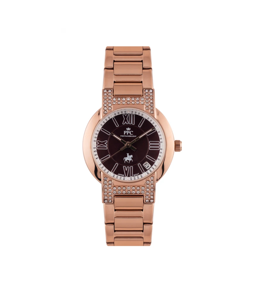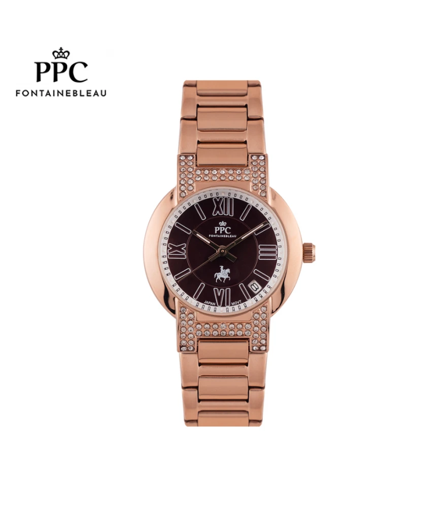 นาฬิกาข้อมือ PPC FONTAINEBLEAU PPC-EC08-RG-BR LE BRETON MODERN DIAMOND DATE 32 MM,ROSEGOLD / BROWN