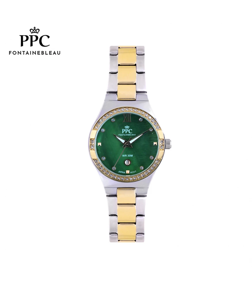 • นาฬิกา PPC FONTAINEBLEAU PPC-EF09-SGD-GN ÉTOILE EF09 22 MM,SILVER GOLD / GREEN